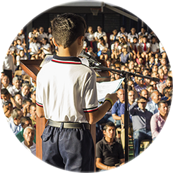 Somos una comunidad educativa, que Evangeliza, Educa y Encarna los Valores del Reino de Dios, para enfrentar los retos del mundo actual colaborando en la formación integral de nuestros alumnos, a través del desarrollo de competencias que los lleven a ser agentes de cambio en la familia y en la sociedad.